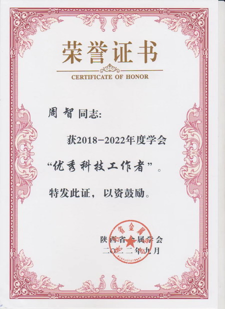大會宣讀了《關于表彰陜西省金屬學會優秀科技工作者的決定》和《關于表彰2022年度陜西省冶金科學技術獎的決定》,華邦建設總工周智、工程部長龐世冬被授予“陜西省金屬學會優秀科技工作者”榮譽稱號。