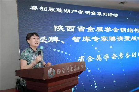 省金屬學會常務副理事長李三梅女士首先說明了省金屬學會鋼結構專業委員會的職責,它是省金屬學會下設的開展鋼結構專業活動的組織,負責鋼結構范疇內的學術交流和工作調研,開展技術攻關、技術咨詢,進行繼續教育和技術培訓,促進陜西省鋼結構技術繁榮與發展。同時,她指出華邦建設是一家鋼結構專業公司,重視技術創新,打造技術優勢,很符合省金屬學會關于鋼結構專業委員會掛靠單位的要求,因此,她希望華邦建設能肩負起鋼結構專業委員會的組織責任,堅持自主創新,帶動科技進步,確保鋼結構專業委員會各項工作順利開展。