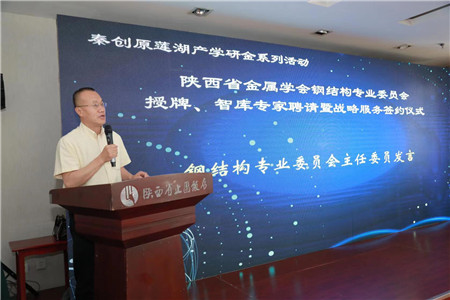 鋼結構專業委員會主任委員行礎先生通過闡述三十年來鋼結構建筑的發展,以及未來將會面臨的挑戰,為鋼結構專業委員會展望工作思路,提出將聯合蓮湖區科技局,攜手鋼結構智庫專家,立足鋼結構技術創新,服務政府,服務業主,服務項目,打造鋼結構場館、鋼結構住宅、鋼結構光伏、綠建、裝配式、工業園、物流園、工程咨詢和巖土等九大應用領域,開展技術咨詢、專家論證、項目策劃、產業規劃四項服務,促進鋼結構技術轉化應用,推動陜西省鋼鐵工業與鋼結構建筑融合創新發展。