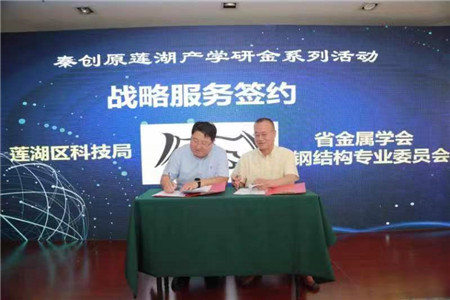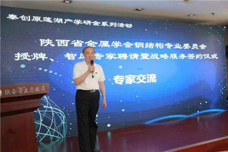 5月20日上午,由西安市科技局指導,蓮湖區科技局主辦,陜西省金屬學會鋼結構專業委員會承辦的秦創原產學研金系列活動——陜西省金屬學會鋼結構專業委員會授牌、專家智庫聘請及戰略服務簽約儀式在陜西省止園飯店召開。