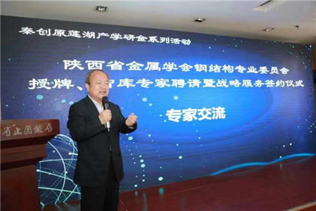 隨后進行了陜西省金屬學會鋼結構專業委員會授牌,省土木學會鋼結構分會賀信宣讀,戰略服務簽約和智庫專家聘請儀式。