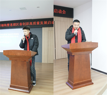 西安交大教授、博士生導師馬建勛,中國啟源工程設計研究院市場部總經理李濤,企業高質量發展服務平臺董事長李赟,中國有色西勘院城市更新與新能源分院院長馬小歌,天維科技總經理李強,華邦鋼結構工程總監任戰龍,鋼結構安裝杜沛等多位嘉賓代表依次發言,表達了對華邦鋼結構“質量領先 終身質保”理念的高度認可和對2025年合作發展的美好期許。
