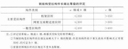 對鋼結構受拉構件還需要以長細比作為檢査項目參與上述評級。