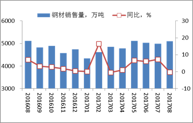 圖2重點鋼鐵企業鋼材銷售量及同比