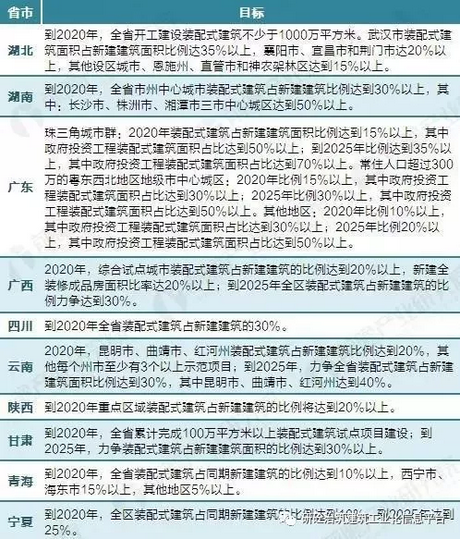 2017年3月23日,住房和城鄉建設部印發《“十三五”裝配式建筑行動方案》、《裝配式建筑示范城市管理辦法》、《裝配式建筑產業基地管理辦法》,《行動方案》明確提出:到2020年,全國裝配式建筑占新建建筑的比例達到15%以上,其中重點推進地區達到20%以上,積極推進地區達到15%以上,鼓勵推進地區達到10%以上。