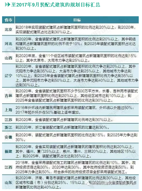 此后在《關于大力發展裝配式建筑的指導意見》、《國務院辦公廳關于促進建筑業持續健康發展的意見》等多個政策中明確提出“力爭用10年左右時間使裝配式建筑占新建建筑的比例達到30%”的具體目標。