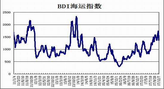 2017年波羅的海干散貨海運(yùn)指數(shù)延續(xù)反彈,但海運(yùn)市場依然在不斷調(diào)整中尋求利潤源泉,總體而言海運(yùn)行業(yè)產(chǎn)能過剩的情況并沒有得到大的轉(zhuǎn)變,數(shù)據(jù)顯示BDI指數(shù)由年初953反彈至12月底1366,漲幅超40%。2017年以來,全球經(jīng)濟(jì)回暖,國際市場需求總體回升,中國經(jīng)濟(jì)穩(wěn)中有進(jìn)、穩(wěn)中向好態(tài)勢持續(xù)發(fā)展,外貿(mào)發(fā)展面臨的國內(nèi)外環(huán)境有所改善。從國際市場看,中國對美國、歐盟、日本等傳統(tǒng)市場出口均有增長。同時,中國對巴西、俄羅斯、印度、南非、馬來西亞等金磚國家和“一帶一路”沿線國家出口快速增長,其中對巴西出口增幅甚至達(dá)到近四成。