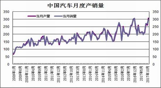 2017年前11個月中國汽車產(chǎn)銷總體穩(wěn)中有升,但增速較去年同期放緩。據(jù)統(tǒng)計數(shù)據(jù)顯示,2017年1-11月中國汽車銷量為2588.14萬輛,同比增長4%,全年汽車總銷量仍將超過2700萬輛;1-11月中國汽車產(chǎn)量達(dá)2603.17萬輛,同比增幅4%。2017年對于中國汽車市場或是一個轉(zhuǎn)折點(diǎn),中國汽車市場在2008年為起步發(fā)展期,然后穩(wěn)步增長,從2009年到2016年這段快速普及期,整個增速非常快。2017年全年同比增速放緩至5%下方,這也預(yù)示著中國的汽車市場進(jìn)入了一個逐漸飽和的時期。2018年還有一個重要的因素就是購置稅優(yōu)惠退坡的影響量。2017年受到購置稅的影響有120萬輛,2018年市場預(yù)計會有180萬輛的影響。預(yù)計在2018年1~3月份購車的消費(fèi)者會提前到2017年購車。綜合所有的因素,我們看到購置稅是最大的影響因素,其他方面