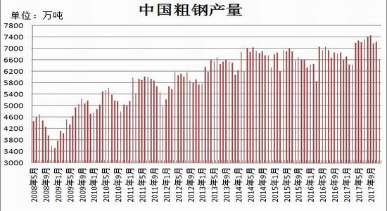 據(jù)國家統(tǒng)計局?jǐn)?shù)據(jù)顯示,2017年1-11月中國粗鋼產(chǎn)量為77798萬噸,去年同期粗鋼產(chǎn)量為74141萬噸,同比增長4.9%。粗鋼產(chǎn)量同比增長,鋼價重心卻逐步上移,更關(guān)鍵因素則是全國去除落后鋼鐵產(chǎn)能(包括取締“地條鋼”產(chǎn)能)已經(jīng)超過2億噸,這大幅削弱了鋼材實(shí)際供應(yīng)量的產(chǎn)能基礎(chǔ)。加之年內(nèi)鐵腕環(huán)保力度的加大,鋼廠庫存屢創(chuàng)新低。這就表明,有增無減的供應(yīng)壓力,主要是被更為旺盛的國內(nèi)需求增長所消化吸收。