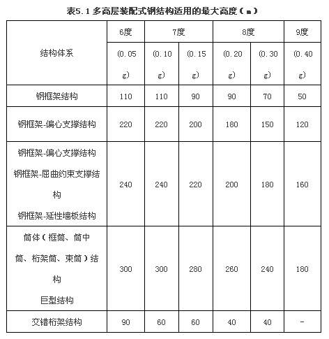 表5.1 多高層裝配式鋼結(jié)構(gòu)適用的最大高度(m)結(jié)構(gòu)體系6度7度8度9度(0.05g)