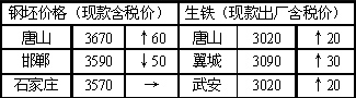 河北部分地區鋼坯生鐵價格 (元/噸)
