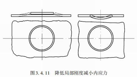 在焊接封閉焊縫或其他剛性較大,自由度較小的焊縫時,可以采用反變形法來增加焊縫的自由度,減小焊接應力,如下圖3.4.11所示。