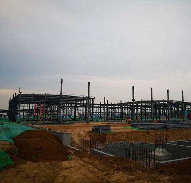 吉利鋼結構廠房主體與鋼柱的安裝