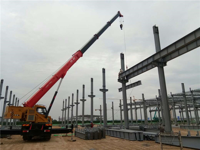 鋼結構廠房在建項目名稱:吉利鋼結構廠房主體與鋼柱的安裝
