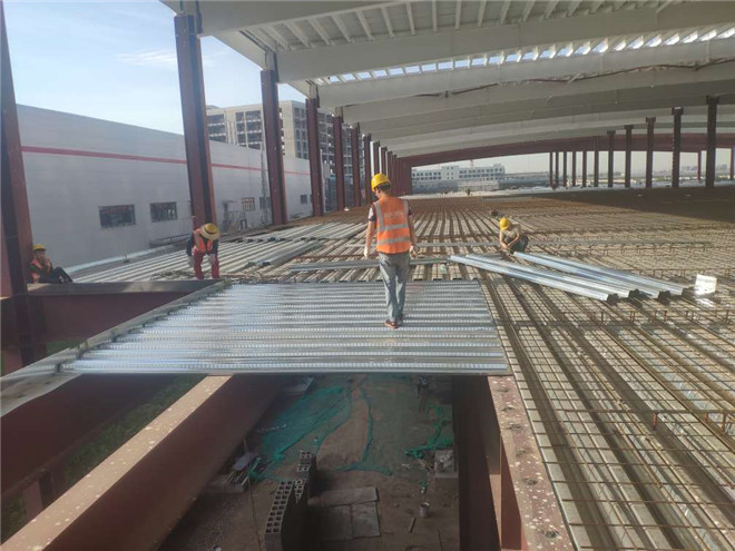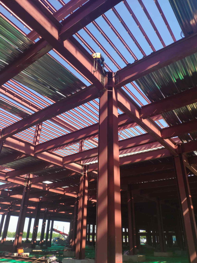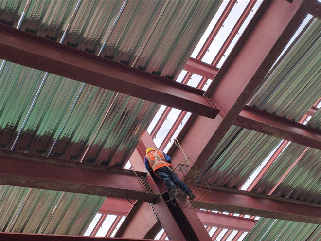 鋼結構廠房在建項目名稱:隆基樂葉鋼結構廠房梁柱節點焊接與樓承板鋪設