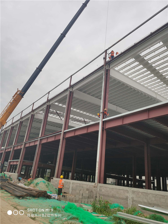 隆基樂(lè)葉鋼結(jié)構(gòu)廠房墻面檁條安裝
