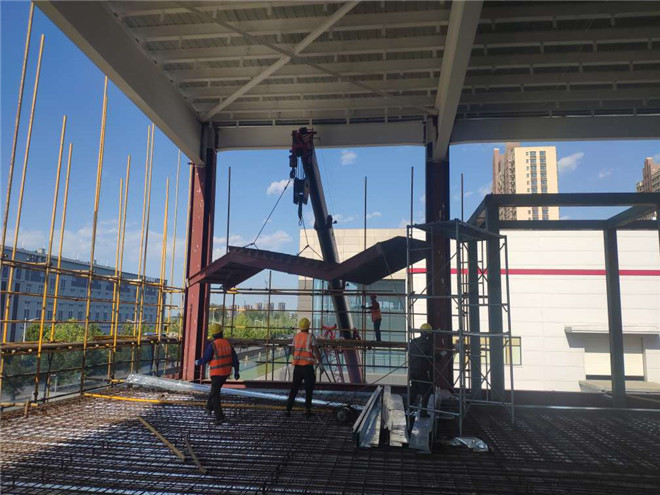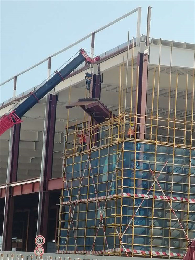 鋼結(jié)構(gòu)廠房在建項(xiàng)目名稱:隆基樂葉鋼結(jié)構(gòu)廠房樓梯安裝和屋面外板壓制
